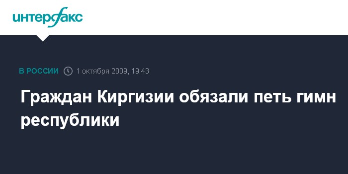 Бишкек. 1 октября. INTERFAX.RU - Парламент Киргизии в четверг принял поправки в закон "О государственных символах", обязывающие граждан страны петь гимн республики во время его официального исполнения, сообщили в четверг "Интерфаксу" в пресс-службе парламента республики.