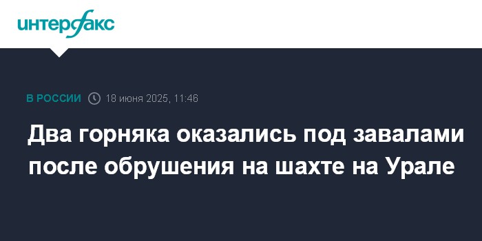 Москва. 18 июня. INTERFAX.RU - Два горняка оказались под завалами после обрушения на шахте "Черемуховская глубокая" в Свердловской области, сообщили "Интерфаксу" в экстренных службах.