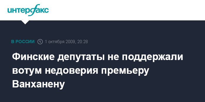 Хельсинки. 1 октября. INTERFAX.RU - Парламент Финляндии не подержал в четверг предложение оппозиции объявить недоверие премьер-министру Матти Ванханену.