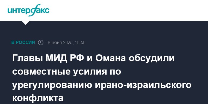 Главы МИД РФ и Омана обсудили совместные усилия по урегулированию ирано-израильского конфликта
