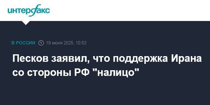Москва. 19 июня. INTERFAX.RU - Российская поддержка Ирана в условиях его конфликта с Израилем очевидна, заявил пресс-секретарь президента РФ Дмитрий Песков.