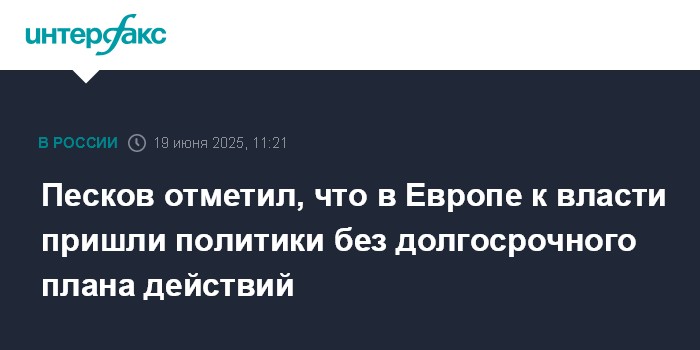 Песков отметил, что в Европе к власти пришли политики без долгосрочного плана действий