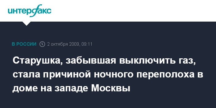 Старушка, забывшая выключить газ, стала причиной ночного переполоха в доме на западе Москвы