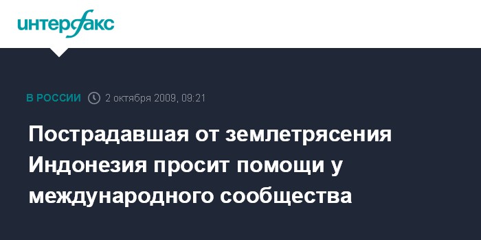 Махачкала. 2 октября. INTERFAX.RU - Власти Индонезии в пятницу призвали международное сообщество направить помощь на остров Суматра, пострадавший от разрушительного землетрясения.