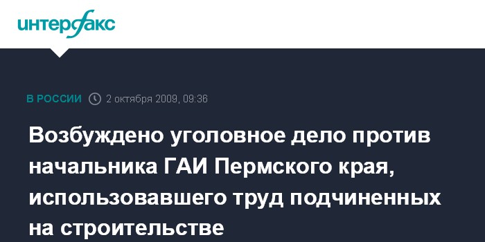 Возбуждено уголовное дело против начальника ГАИ Пермского края, использовавшего труд подчиненных на строительстве
