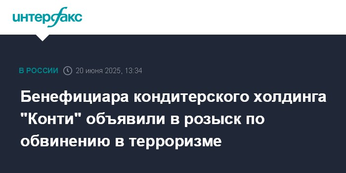 Бенефициара кондитерского холдинга "Конти" объявили в розыск по обвинению в терроризме