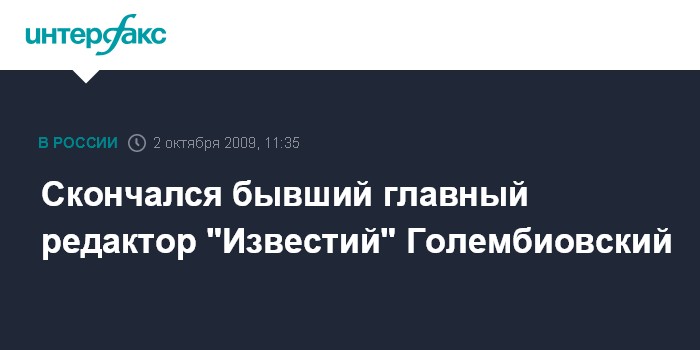 Скончался бывший главный редактор "Известий" Голембиовский
