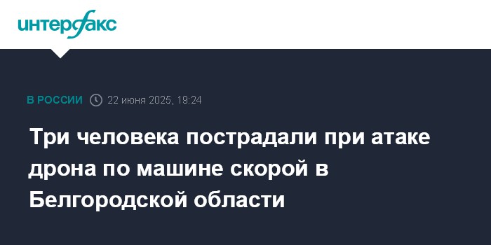 Москва. 22 июня. INTERFAX.RU - Три сотрудника скорой помощи и водитель автобуса ранены при атаке БПЛА в Белгородской области, сообщил губернатор Вячеслав Гладков.