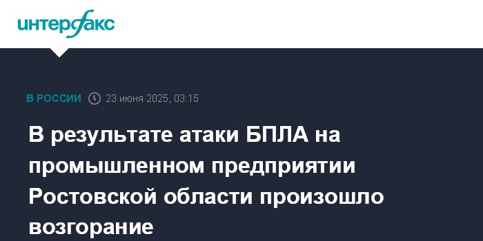 В результате атаки БПЛА на промышленном предприятии Ростовской области произошло возгорание