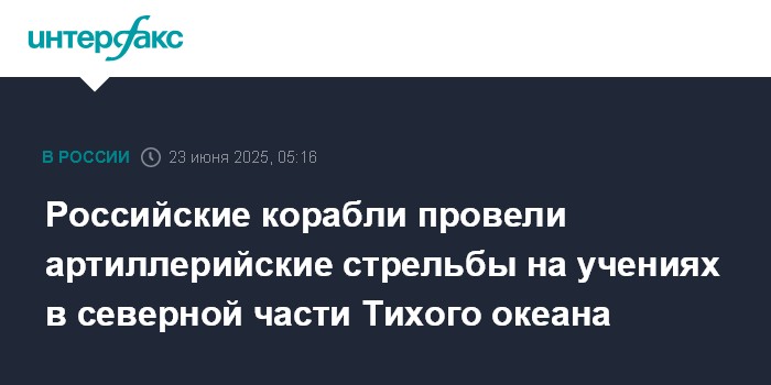 Москва. 23 июня. INTERFAX.RU - Российские противолодочные корабли отработали артиллерийские стрельбы по морским и воздушным целям в ходе учений сил Тихоокеанского флота (ТОФ).