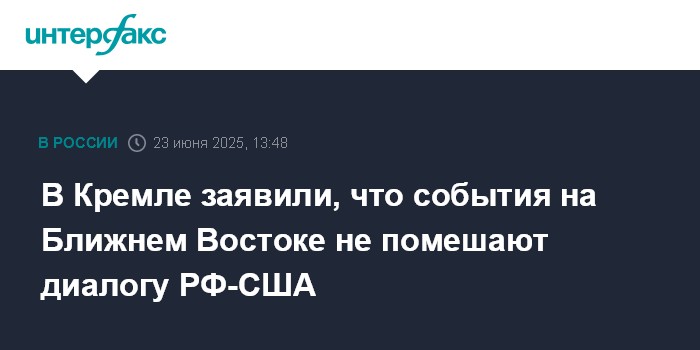 Москва. 23 июня. INTERFAX.RU - Ситуация на Ближнем Востоке не будет мешать диалогу России и США, заявил пресс-секретарь президента РФ Дмитрий Песков.