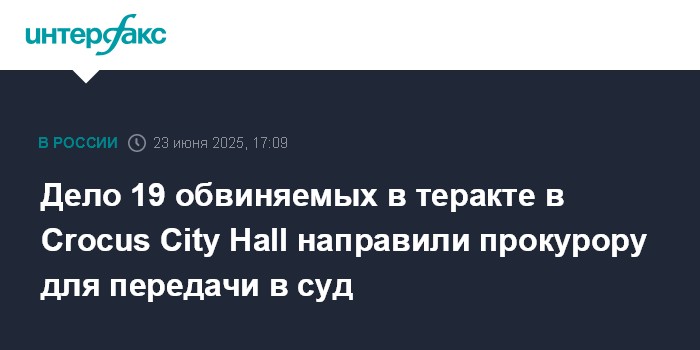 Дело 19 обвиняемых в теракте в Crocus City Hall направили прокурору для передачи в суд