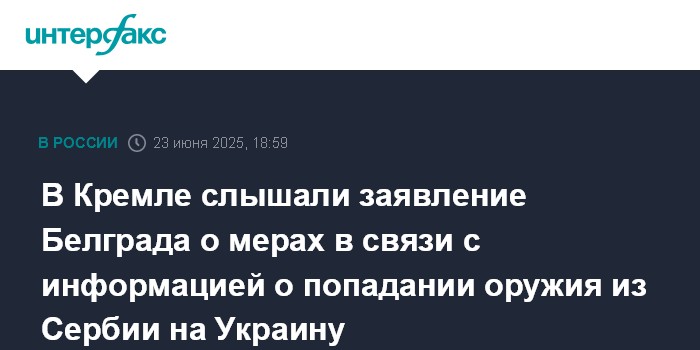 Москва. 23 июня. INTERFAX.RU - Пресс-секретарь президента РФ Дмитрий Песков заявил, что в Кремле обратили внимание на поступающие из Белграда заявления о принимаемых мерах в связи с информацией о попадании оружия из Сербии на Украину.