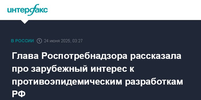 Москва. 24 июня. INTERFAX.RU - Многие страны проявляют интерес к российским алгоритмам, методикам и технологиям в области противоэпидемической работы, заявила в интервью "Интерфаксу" глава Роспотребнадзора Анна Попова.