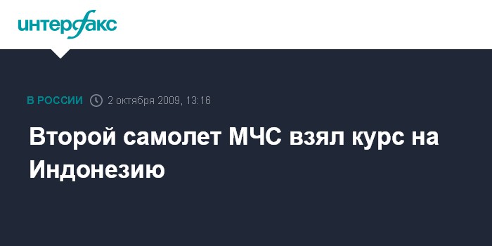 Москва. 2 октября. INTERFAX.RU - Второй самолет МЧС России со спасателями и необходимым оборудованием вылетел в пятницу в 12:55 МСК из Москвы на индонезийский остров Суматра, где в среду произошло разрушительное землетрясение. Как сообщили журналистам в управлении информации МЧС РФ, на борту самолета группа врачей и аэромобильный госпиталь.