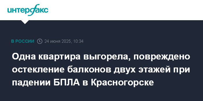 Одна квартира выгорела, повреждено остекление балконов двух этажей при падении БПЛА в Красногорске