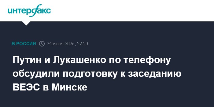 Москва. 24 июня. INTERFAX.RU - Президент России Владимир Путин и президент Белоруссии Александр Лукашенко провели телефонный разговор, сообщает сайт Кремля во вторник.