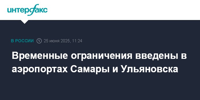 "Для обеспечения безопасности полетов гражданских воздушных судов временные ограничения на их прием и выпуск введены в аэропортах: Самара ("Курумоч"), Ульяновск ("Баратаевка")", - говорится в сообщении.