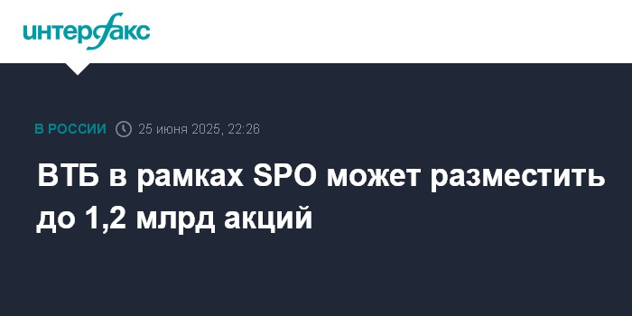 ВТБ в рамках SPO может разместить до 1,2 млрд акций