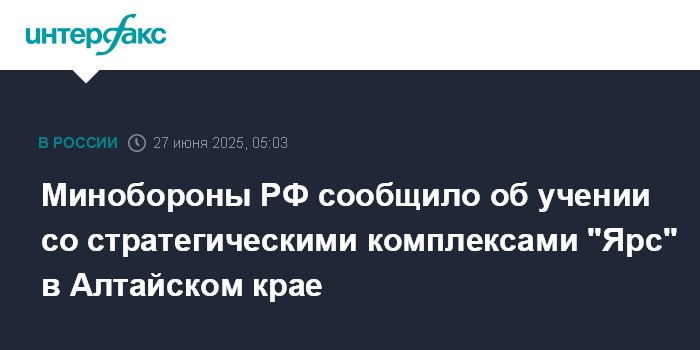 Минобороны РФ сообщило об учении со стратегическими комплексами "Ярс" в Алтайском крае