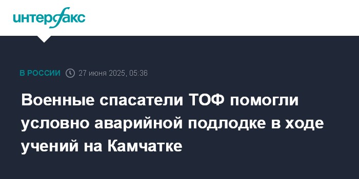 Москва. 27 июня. INTERFAX.RU - Экипаж спасательного судна "Георгий Козьмин" Тихоокеанского флота (ТОФ) провел специальное учение по оказанию помощи условно аварийной подводной лодке в акватории Авачинского залива на Камчатке, сообщает пресс-служба ТОФ в пятницу.