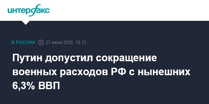 Путин допустил сокращение военных расходов РФ с нынешних 6,3% ВВП