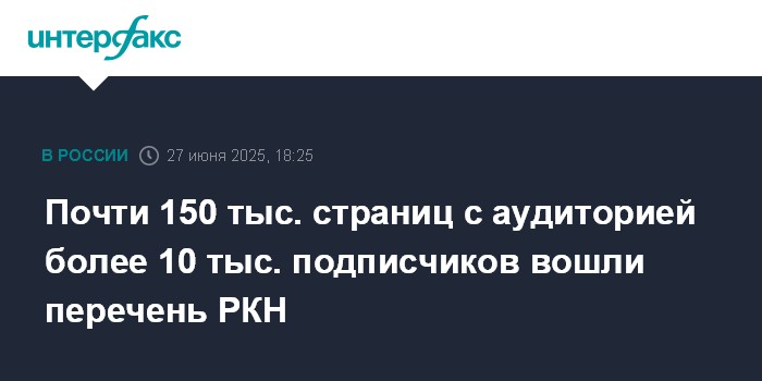 Почти 150 тыс. страниц с аудиторией более 10 тыс. подписчиков вошли перечень РКН
