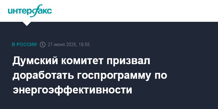 Москва. 27 июня. INTERFAX.RU - Комитет Госдумы по экономической политике указал, что в 2024 году комплексная госпрограмма "Энергосбережение и повышение энергетической эффективности" не имела утвержденной структуры и не получила финансирования, требуется ее срочная доработка и увязка с документами стратегического планирования.