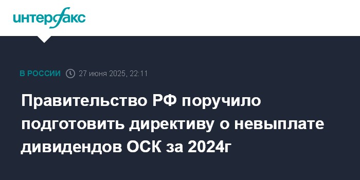 Правительство РФ поручило подготовить директиву о невыплате дивидендов ОСК за 2024г