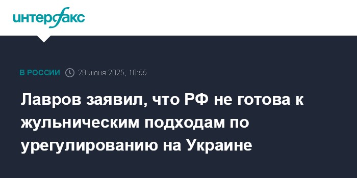 Москва. 29 июня. INTERFAX.RU - Россия открыта к честной работе по урегулированию конфликта на Украине и не признает жульнические подходы в этом вопросе, заявил министр иностранных дел РФ Сергей Лавров.