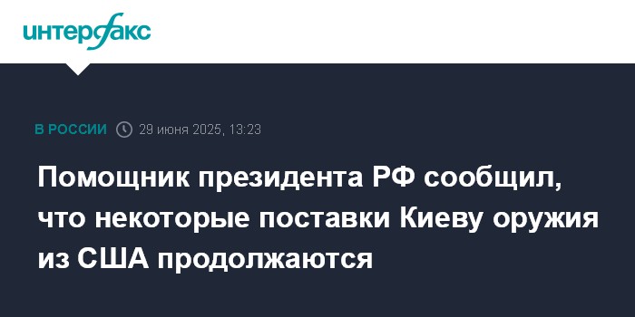 Помощник президента РФ сообщил, что некоторые поставки Киеву оружия из США продолжаются