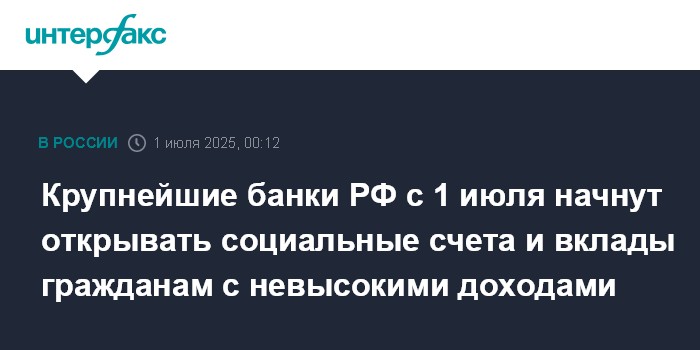 Крупнейшие банки РФ с 1 июля начнут открывать социальные счета и вклады гражданам с невысокими доходами