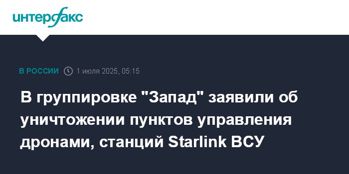 В группировке "Запад" заявили об уничтожении пунктов управления дронами, станций Starlink ВСУ