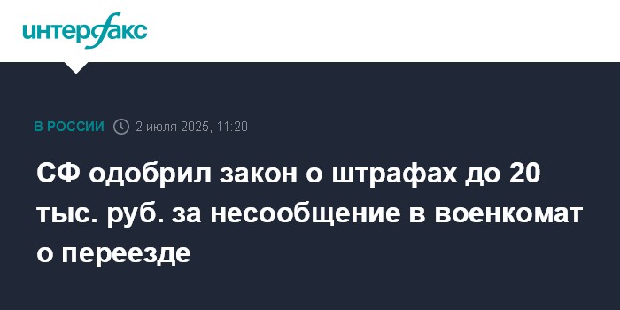СФ одобрил закон о штрафах до 20 тыс. руб. за несообщение в военкомат о переезде