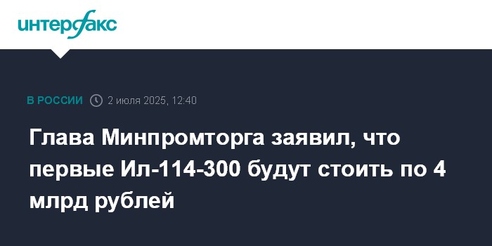 Глава Минпромторга заявил, что первые Ил-114-300 будут стоить по 4 млрд рублей