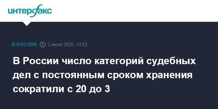 В России число категорий судебных дел с постоянным сроком хранения сократили с 20 до 3