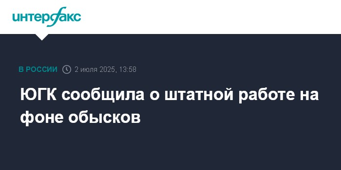 ЮГК сообщила о штатной работе на фоне обысков