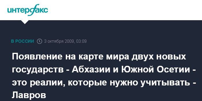 Появление на карте мира двух новых государств - Абхазии и Южной Осетии - это реалии, которые нужно учитывать - Лавров