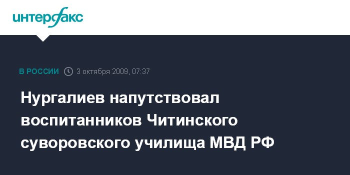 Нургалиев напутствовал воспитанников Читинского суворовского училища МВД РФ