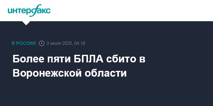 Москва. 3 июля. INTERFAX.RU - Над несколькими городами Воронежской области силами ПВО уничтожено более пяти беспилотников, сообщил губернатор Александр Гусев в своем телеграм-канале в четверг.