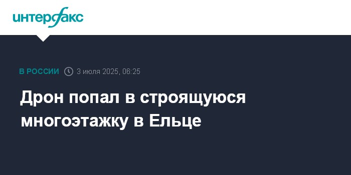 Москва. 3 июля. INTERFAX.RU - Беспилотник попал в строящийся многоквартирный дом в Ельце, повреждено остекление заселенной части здания, предварительно, никто не пострадал, сообщил губернатор Липецкой области Игорь Артамонов.