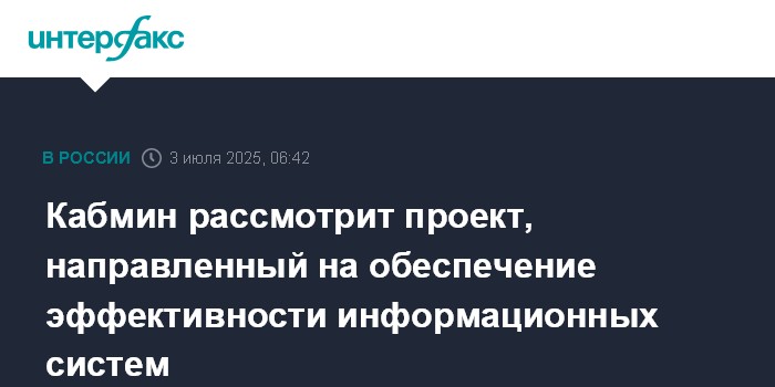 Кабмин рассмотрит проект, направленный на обеспечение эффективности информационных систем