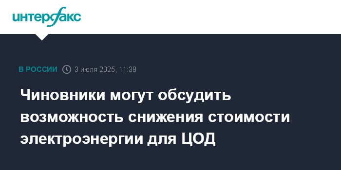 Чиновники могут обсудить возможность снижения стоимости электроэнергии для ЦОД