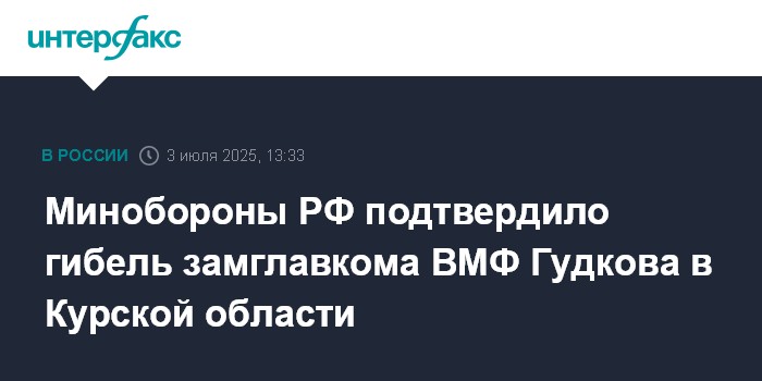 Москва. 3 июля. INTERFAX.RU - Минобороны России сообщило, что в Курской области погиб заместитель главкома ВМФ РФ генерал-майор Михаил Гудков.