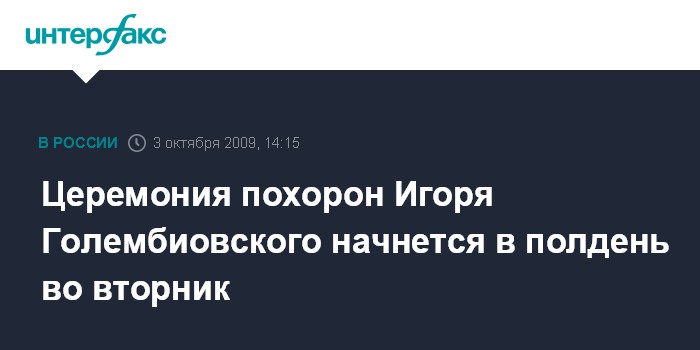 Церемония похорон Игоря Голембиовского начнется в полдень во вторник
