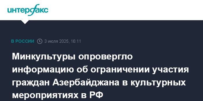 Минкультуры опровергло информацию об ограничении участия граждан Азербайджана в культурных мероприятиях в РФ