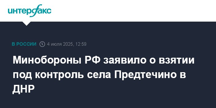 Минобороны РФ заявило о взятии под контроль села Предтечино в ДНР