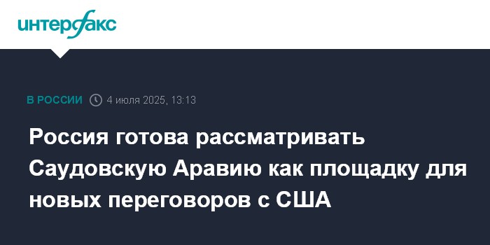 Россия готова рассматривать Саудовскую Аравию как площадку для новых переговоров с США