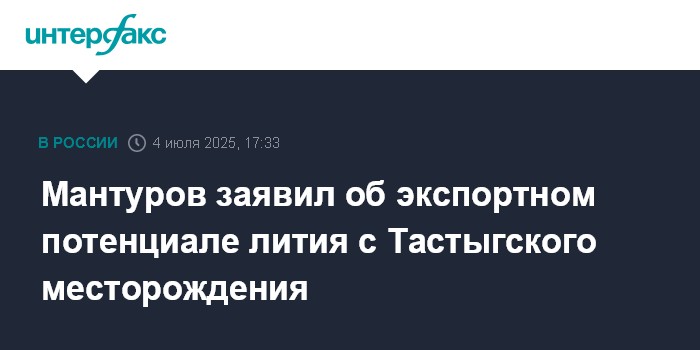Мантуров заявил об экспортном потенциале лития с Тастыгского месторождения