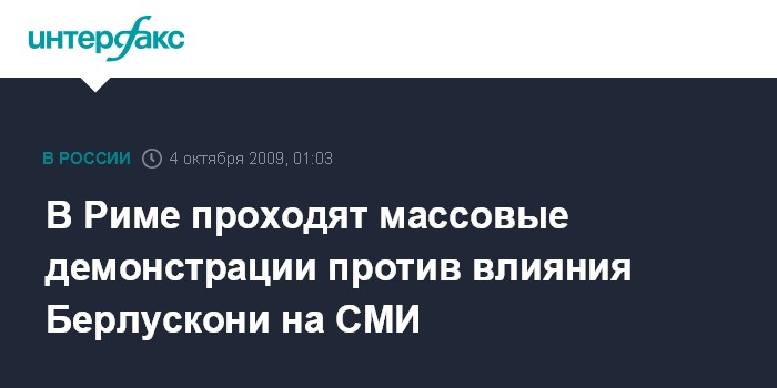 Рим. 4 октября. ИНТЕРФАКС - Десятки тысяч итальянцев проводят в Риме демонстрации в защиту свободы слова, против влияния на СМИ премьер-министра Италии Сильвио Берлускони, сообщает британская телерадиовещательной корпорации Би-би-си.